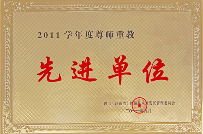 2011年9月,公司被鞍山(達道灣)經濟技術開發(fā)區(qū)管理委員會授予“2011學年度尊師重教先進單位”。