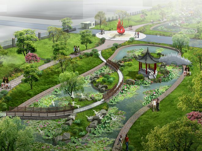 圖為荷花池園林景觀開(kāi)始破土動(dòng)工