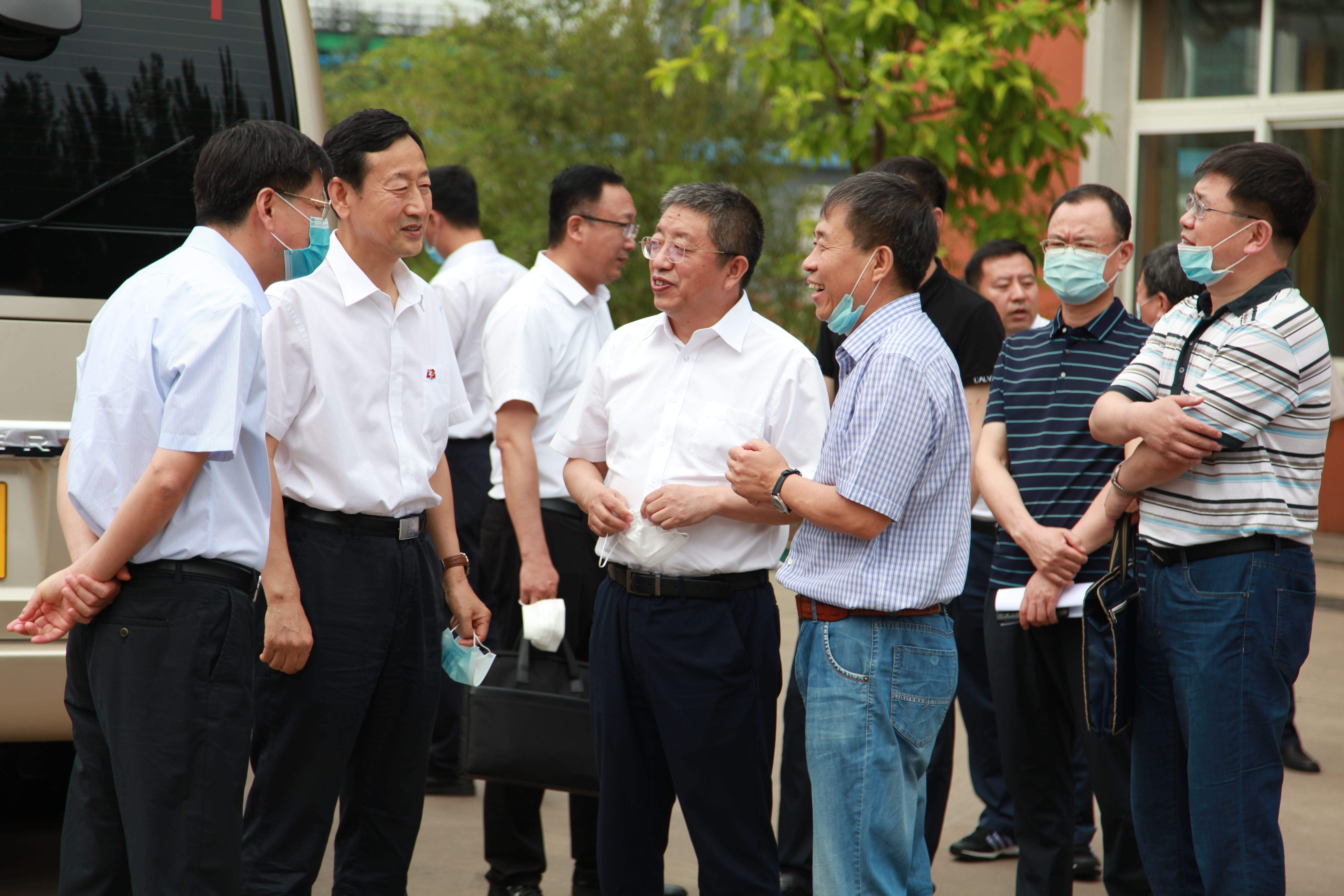 6月23日,遼寧省人大副主任張鐵民(左二)、鞍山市市長余功斌(左一)等領(lǐng)導(dǎo)到公司調(diào)研企業(yè)復(fù)工復(fù)產(chǎn)情況,公司總經(jīng)理張鐵漢陪同調(diào)研。